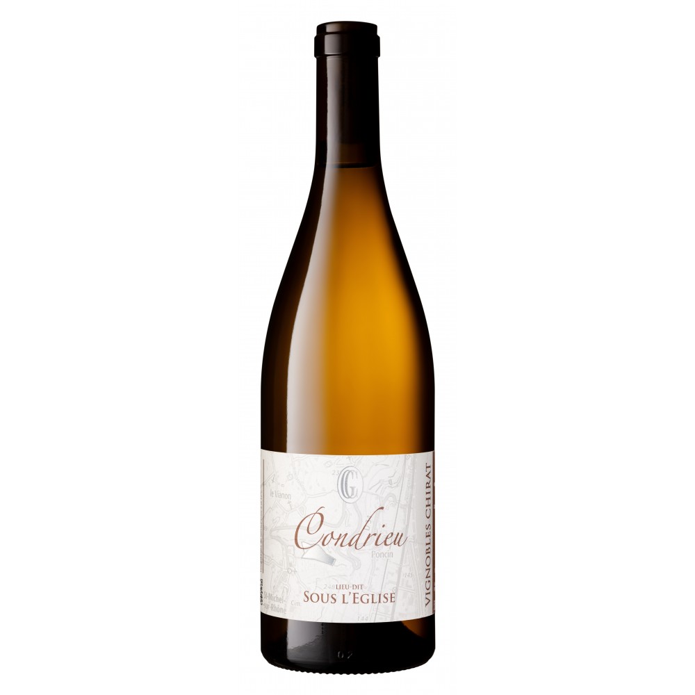 Wine issue of our oldest vine around 50 years old Vintage : 2024 Vinification : Elevage : 20 month Keep : 1 to 4 years for first aromas. Tasting : Wine with gold color shining with green reflect . The noise is very complex with peach exotic fruit and citrus aromas. The mouth is fat, longue and sweet. It’s a wine with high complexity aromatic and a long final. Serving temperature : 8 to 12°C Ideal with : 15.5/20 Guide Vert 2022 la RVF 92/100 DecanterCondrieu Lieu-dit "Sous l'église"